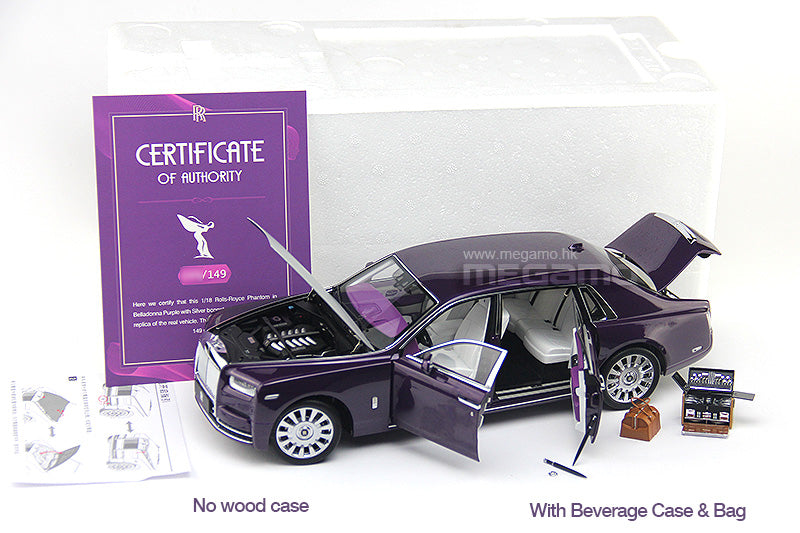1/18 Rolls Royce Phantom VIII 8th 2018-2023 Purple Silver Hood Diecast Full Open Ltd 149 Pcs