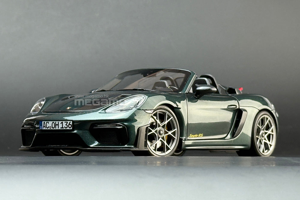 1/18 Norev Porsche 718 Spyder RS w/ Weissach Pack 2023 Forest Green White Diecast Full Openings